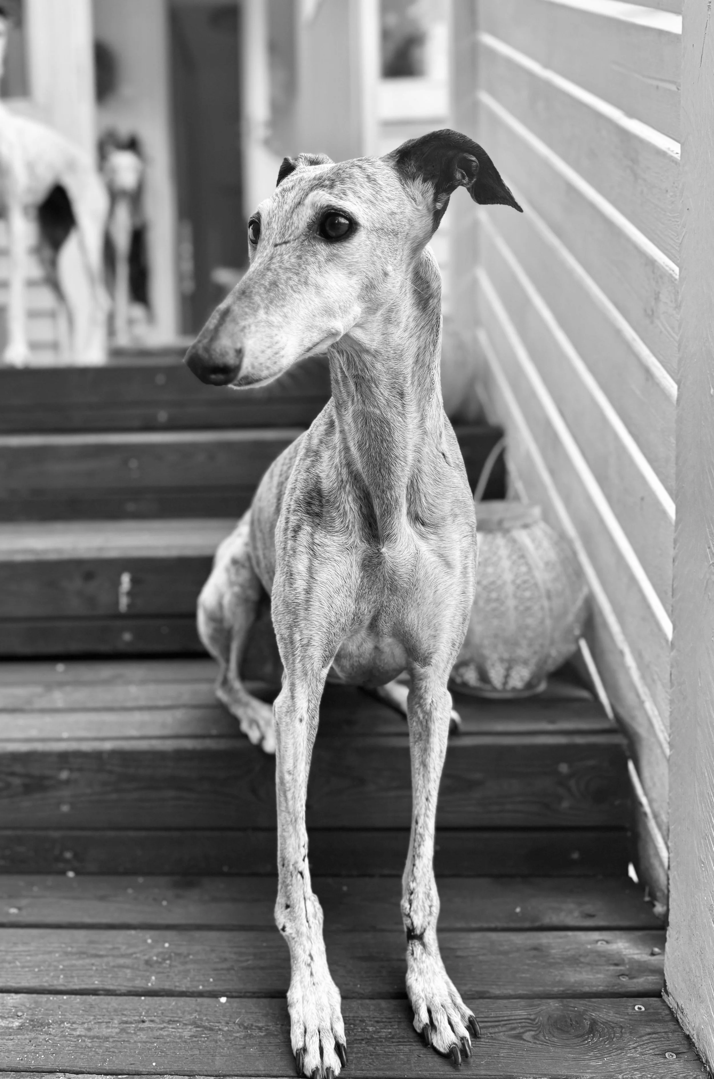 BB, tarhanimeltään Bangbang, tuli Galgos del Surin turvatarhalle keväällä 2022. BB:n etujaloissa oli vanhat murtumat joita ei oltu hoidettu, ja etujalat olivat pahasti vääntyneet. Selvitettiin että BB:n jalat pystyttäisiin leikkaamaan Suomessa, ja BB tulikin luokseni kotihoitoon. BB:n hyväksi järjestettiin huutokauppoja Galgos del Fenix yhdistyksen kautta, joista saaduilla varoilla BB:n jalat pystyttiin hoitamaan kuntoon. BB toimi myös inspiraationa tämän yhdistyksen, Dharma Support for Rescuen syntymiselle. Halusin luoda kanavan jonka kautta ihmiset pystyvät auttamaan BB:n kaltaisia, ja tukemaan rahallisesti tarhoja ja yhdistyksiä jotka tekevät rescuekoirien hyväksi pyytettömästi töitä vuoden jokaisena päivänä, usein oman työnsä ja muun elämänsä lisäksi.